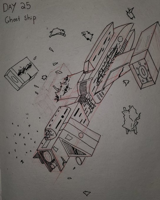 Day 25 ghost ship of Somewhat Spooky art challenge by @jonblissart #Somewhatspooky #ghostship #spaceship #inktober