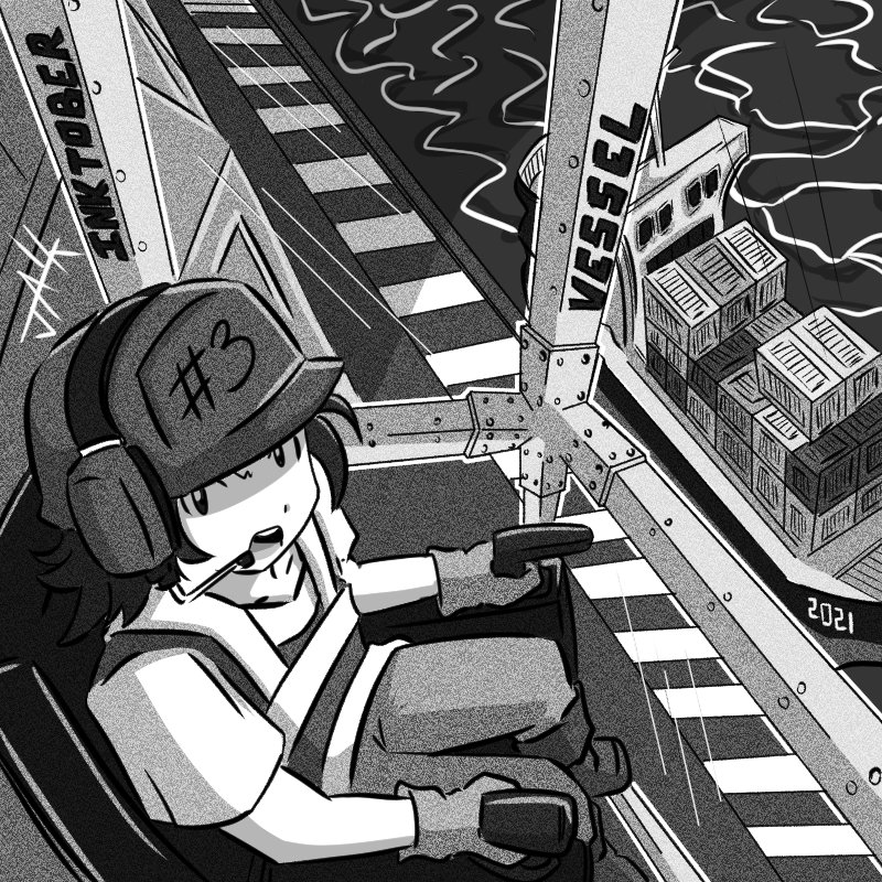 2 9 Inktober Dia 3: Vessel #inktober #inktober52 #inktober2021 #inktoberallyearlong #myinktoberstory #ink #art #inkwork #comics #blackandwhite #sketch #design #inking #inkwork #doodle #creative #artist #character #vessel #port #ship #container #wacom #wacomone #jojotochino 21/10/04 10:56