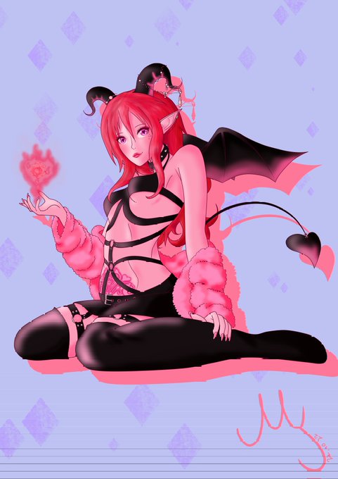 Hey my little sparks ✨ 20h of drawing with no sleep are tough but the end product is worth it! Meet Evilin, my new D&D character. She is an asexual succubus / tiefling that loves to trick people. I'm already excited to play her❤️ #digitalart #DnD #DnDcharacter #dndart #art