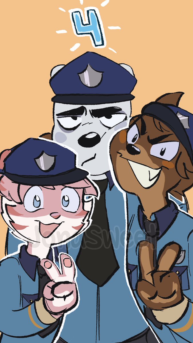 the 3 big cops! Poley, doggy and yogurt!! (the pink tiger is my oc, it's piggy's player) ⭐️ #piggy #poleypiggy #doggypiggy #oc #furry #robloxart #furryart