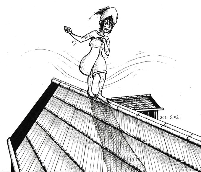 Inktober, day 13 (delayed since the 13th): Roof! #inktober2021 #Inktober #roof #Day13 #lineart #traditionalart