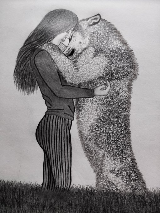 Inktober day 26 art completed. She's scared. Please be gentle. #inktober2020day26 #inktober #inktober2020 #hide #pendrawing #pencildrawing #markerdrawing #blackandwhiteart
