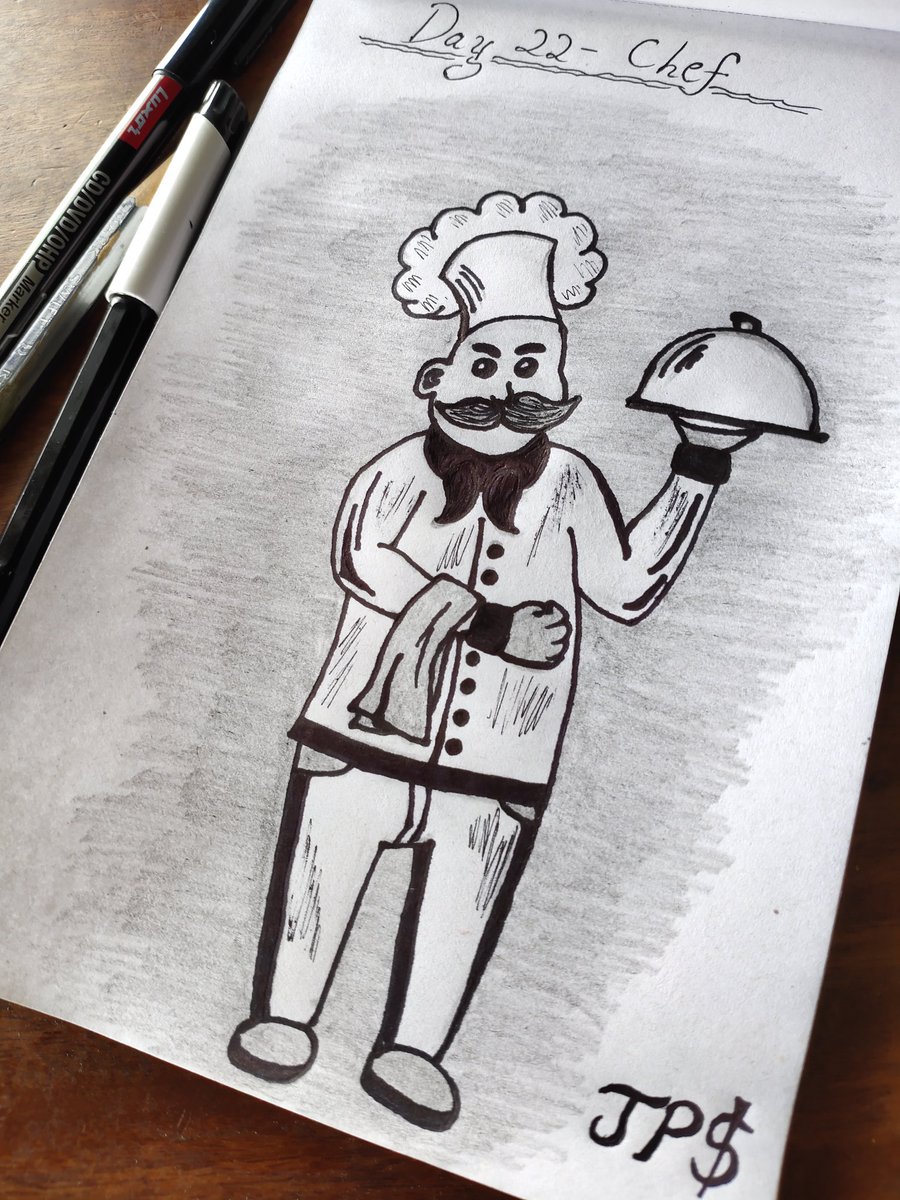 Inktober day 22 art completed. The chef's in time. #inktober #inktober2020 #inktober2020day22 #chef #blackandwhiteart #Pencildrawing #markerdrawing #pendrawing