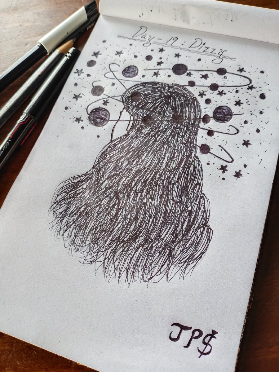 Inktober day 19 art completed. She's dizzy, don't disturb her. #inktober2020day19 #inktober #inktober2020 #dizzy #pendrawing #markerdrawing #pencildrawing #blackandwhiteart