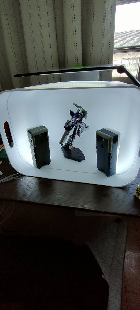 RGエクシアリペアメタルビルド風 メルカリでジャンク品を購入して、ようやく形に出来た ダイソーの300円ボックスを使用しての撮影 #ガンプラ #ガンプラの画像貼るとRTされると聞いて #ガンプラは自由だ