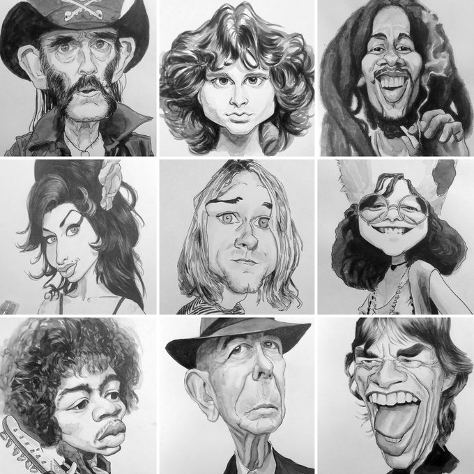 Here my #faceyourart ! Remembering some of the #caricatures of musicians that I painted in 2019 during the #inktober . I hope you like It! #CARICATURA #caricature #faceyourart2020 #faceyourartchallenge #music