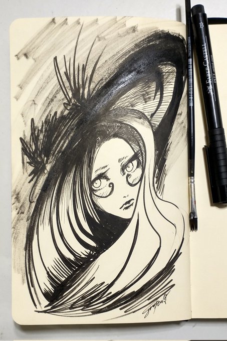 Día12 ♦️ #witchtober2022 #inktober #inktober2022 #ink #witch #inktoberday12 . . . Me salte algunos días, espero ponerme al dia luego ♥️