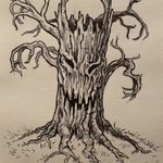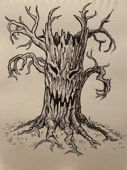 For #Inktober Day 3 with a partner prompt, we went with "something possessed". I did this haunted tree and @mindfulmiche had a killer idea with this awesome heart drawing