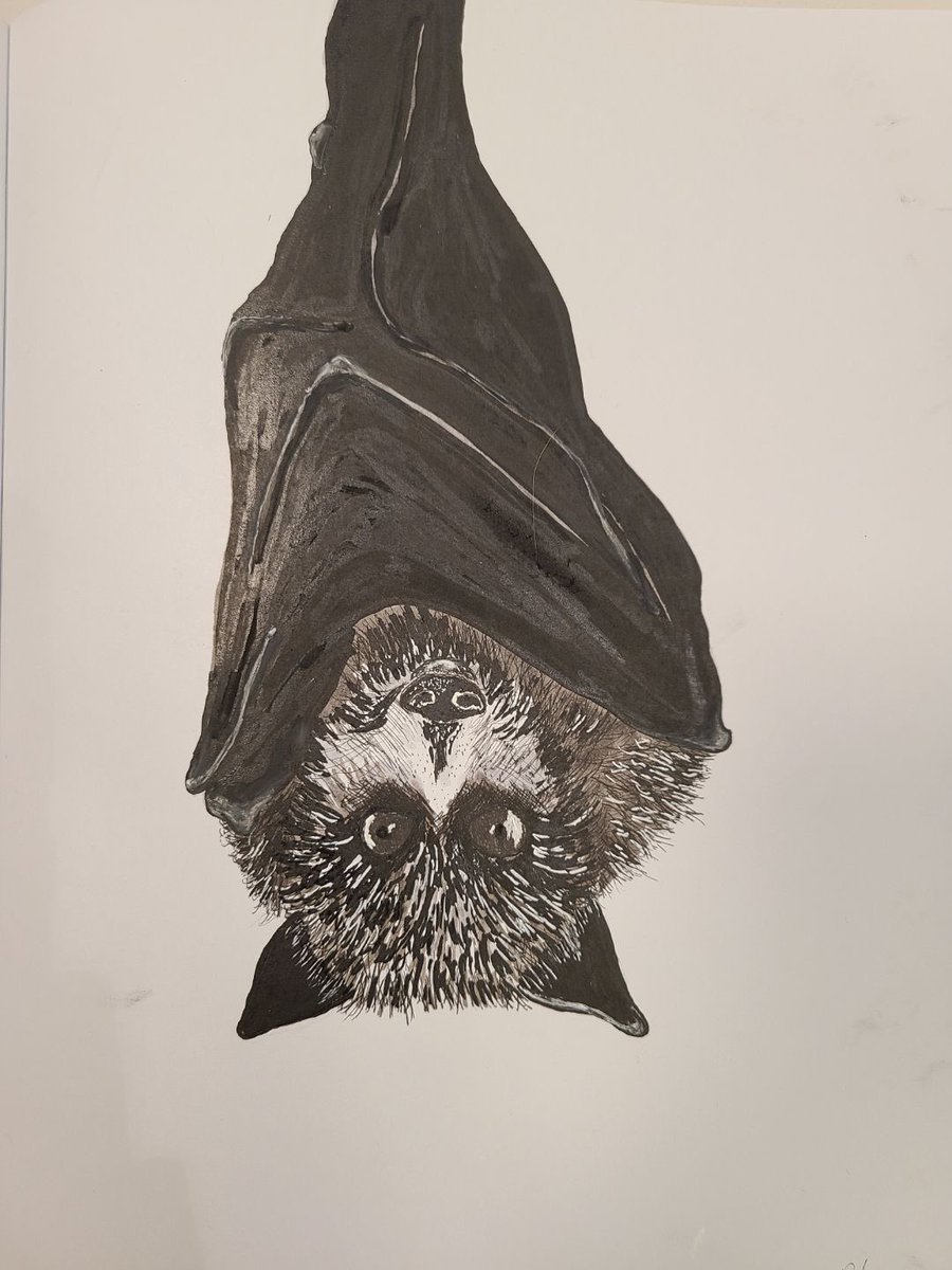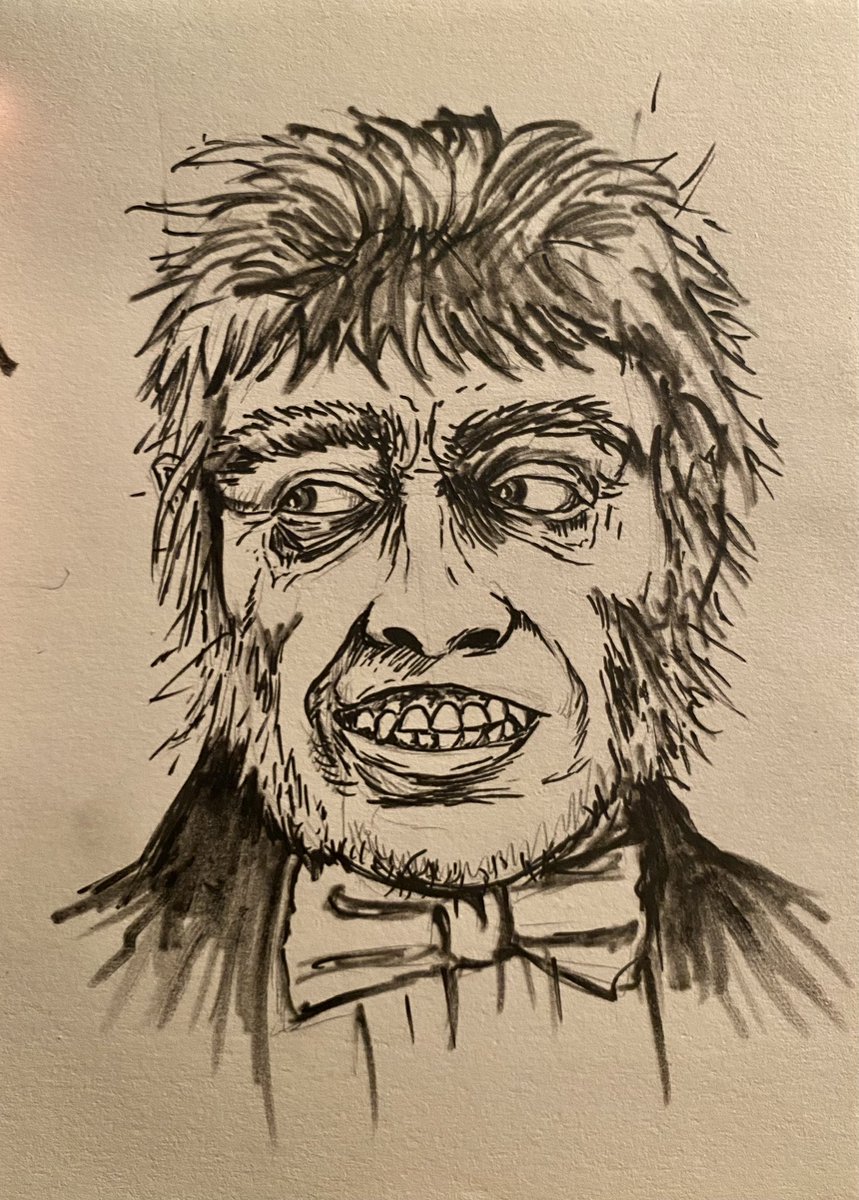 10/1 #Inktober friends prompt! This one was "something hairy". I did Fredric March from the 1931 Dr. Jekyll & Mr. Hyde and @mindfulmiche did this awesome bat!