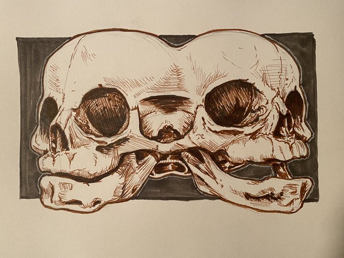 10/6 #Inktober partner prompt was "deformed". @mindfulmiche and I BOTH chose polycephaly as our subject without knowing the other was doing it! Mine on the left, hers on the right! So fun!!!