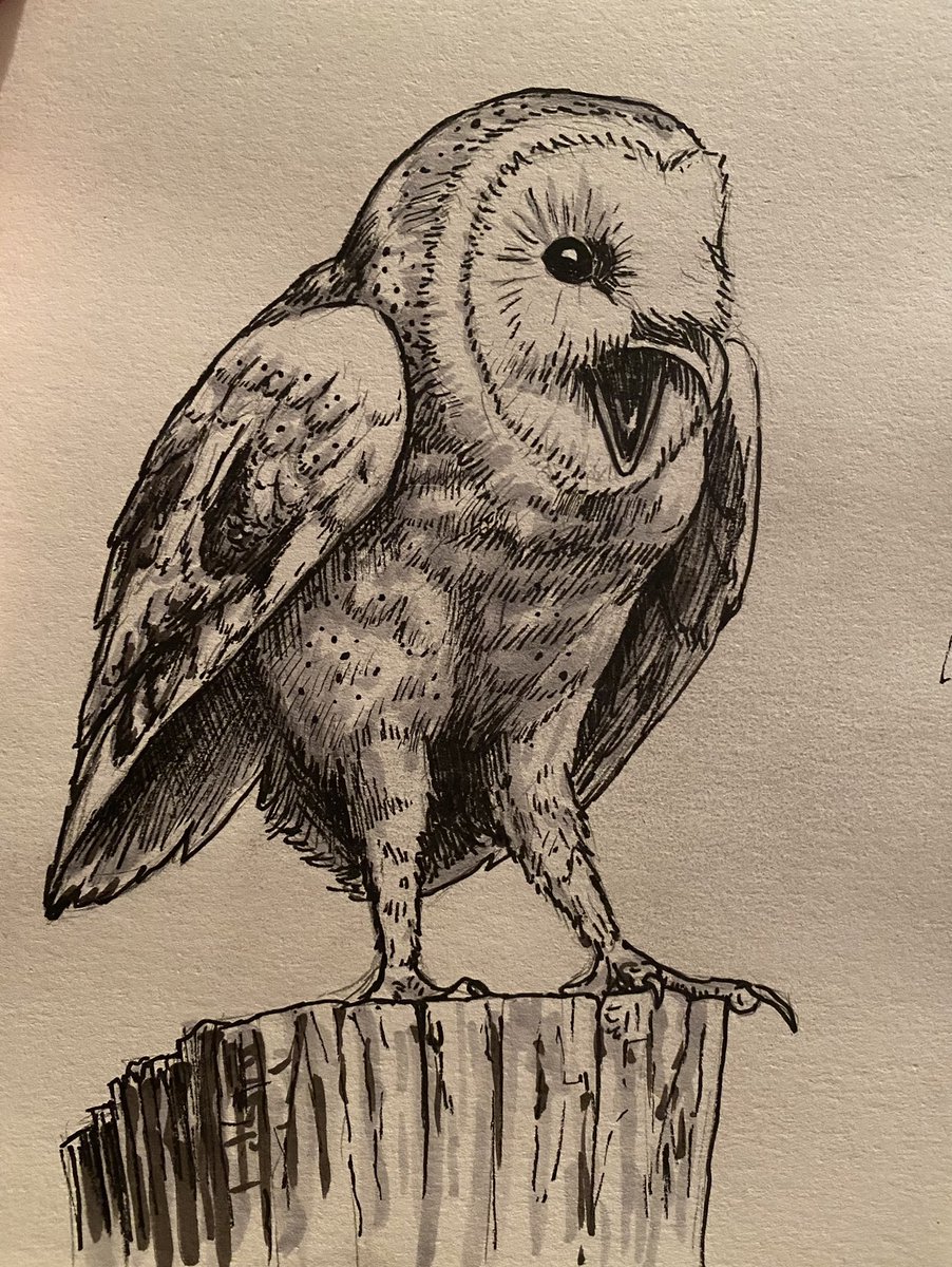 This #inktober partner prompt was something screeching, and @mindfulmiche knocked it out of the park with this fox!!! I did the barn owl! This was a fun one.