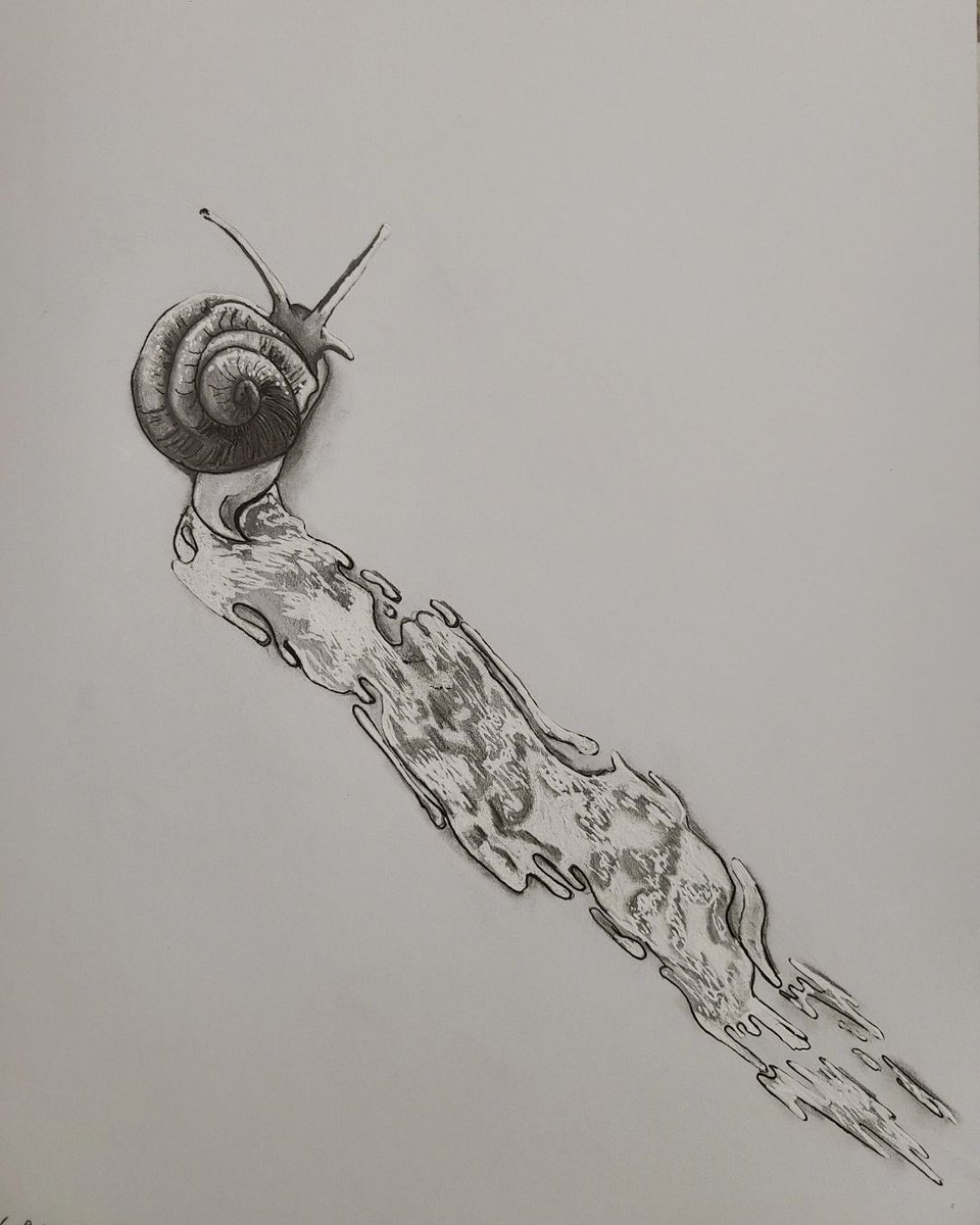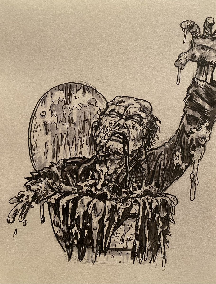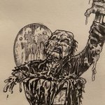 #inktober partner prompt! I chose something slimey! Then did this dude in the toilet, a scene from the movie "Street Trash", and @mindfulmiche did this awesome snail leaving a slime trail! 😍