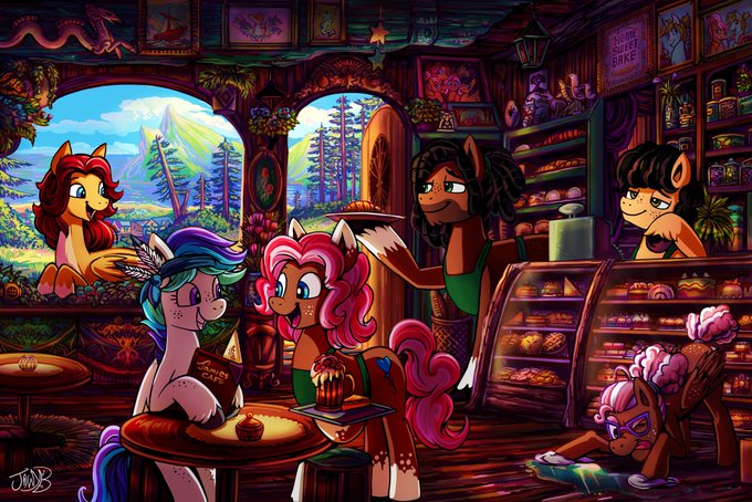 Scenic illustration I made for @pink__pone of her OC pony family that runs a bakery/ café called Jamie's Café, A lot of fun to paint. If you are interested in getting a commission do not hesitate to contact me. ;) #brony #mlpart #illustration #MLP #commissionsopen #MLPFiM