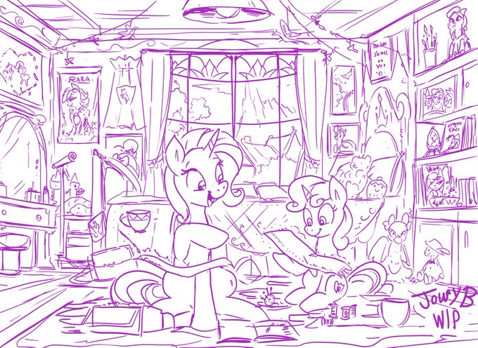 Have a new G4 slice of Equestria illustration in development. It's another interior featuring my favorite sister duo. #MLPFiM #brony #mlpfanart #MLP #sketchart #cute #mlpartist