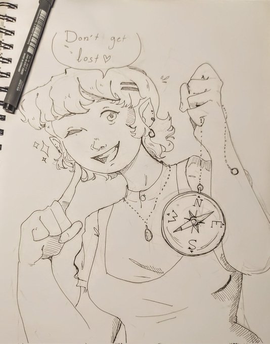 #Inktober day 15: Compass Only halfway there!! #artistsontwitter #inktober2021 #originalcharacters #myart #compass #traditionalart #INK #AnimeArt