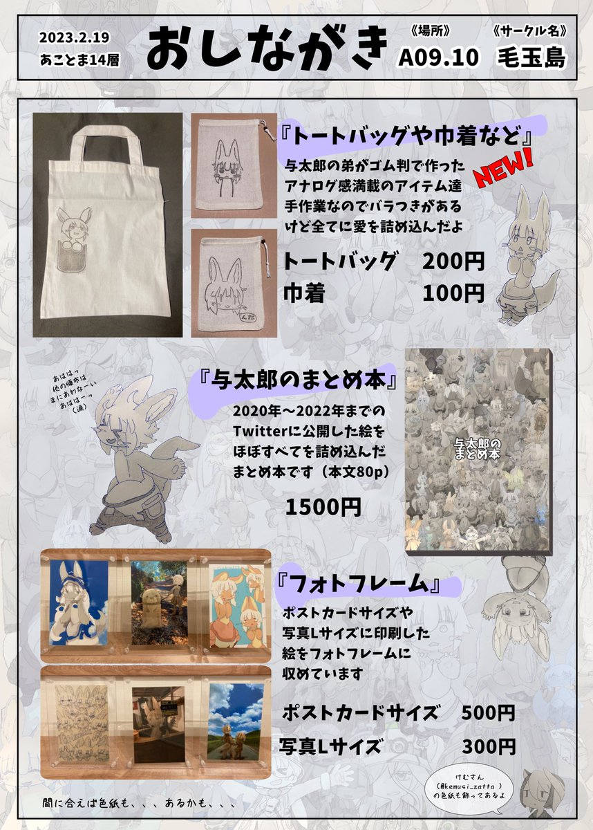60 128 2/19(日)のあこがれがとまらない14層参加します!! なんと今回実の弟ことギリギリライダー(@girigiririder )が一緒に参加します!僕の描いたナナチの絵でバッグとか作るって!?お兄ちゃん嬉しい!! うおおお!!あことまぁぁああ!!!! 23/02/12 00:07