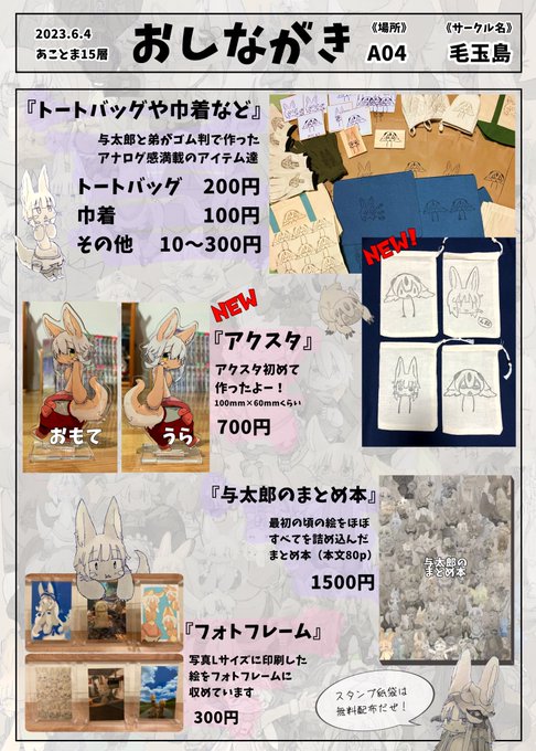 46 158 アナウンスするのすっかり忘れてたましたが、あことまで頒布したナナチのアクスタと巾着を近日中にBOOTHにて頒布します!🙇♂️ 再発注したアクスタが届くのと、弟のゴム判ぺたぺた内職の目処がたてば来週中には開けると思います!🙇♂️🙇♂️🙇♂️ 23/06/15 22:53