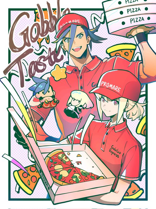 585 1750 ガロリオ アンソロジー『Gobble Taste』の無配ポスカのイラストGali expressです。お腹いっぱい召し上がれ☺️🍕❤️ 22/08/13 14:21