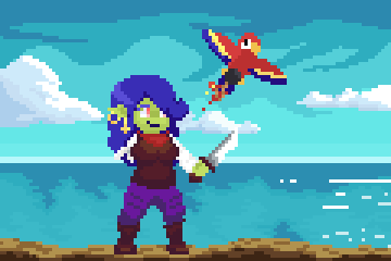 A goblin pirate and his companion the parrot Arrrgh. #aseprite - #ドット絵 - #pixelartist - #Goblin - #pixelart - #Pirate - #PirateGoblin
