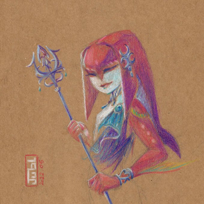 [ENG] It's May, it's Mermay, it's time to draw Mipha! [FR] Mois de mai, mois du Mermay, le moment parfait pour dessiner Mipha ! #mermay #mermay2022 #mermaid #fanart #traditionalart #BreathoftheWild #Zelda #TheLegendOfZelda