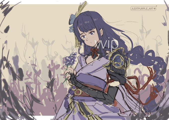 Primer fanart de genshin que hago, tenia demasiadas ganas de dibujar a Raiden Shogun. Pronto subiré el dibujo completado💜💜 #RaidenShogun #GenshinImpact #genshinimpactfanart #fanart