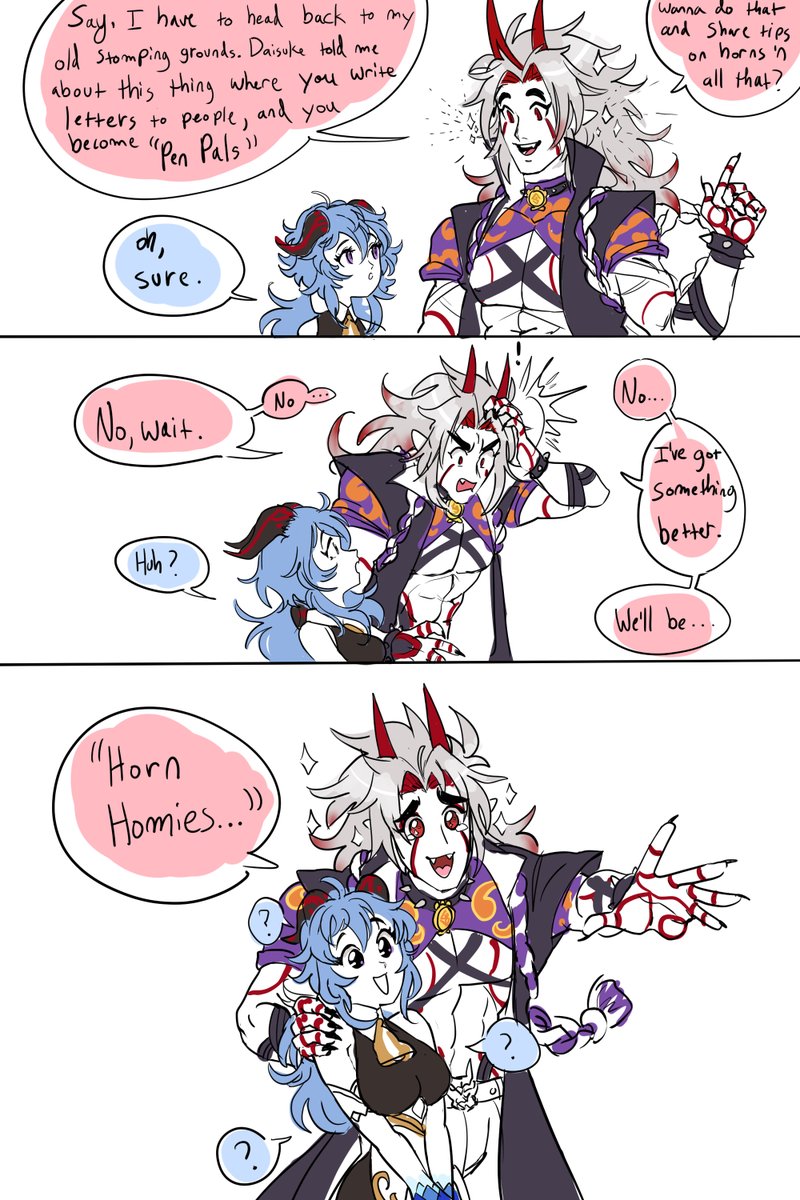 Not a ship thing, but I like to imagine them being friends🥺! Or...As Itto would say... #Itto #Ganyu #GenshinImpact