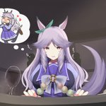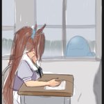 絶望的なレベルで多忙でカフェ誕生日絵を描く時間を捻出出来なさそうなので過去絵で何卒……☕ ・バレンタインデー ・↓のスタンプに背景足した回 ・ウマ絵鯖の挨拶スタンプ用に捏造(公式風)した回 ※公式実装前 ・かへ (元絵:ぐまから氏) #ウマ娘 #マンハッタンカフェ