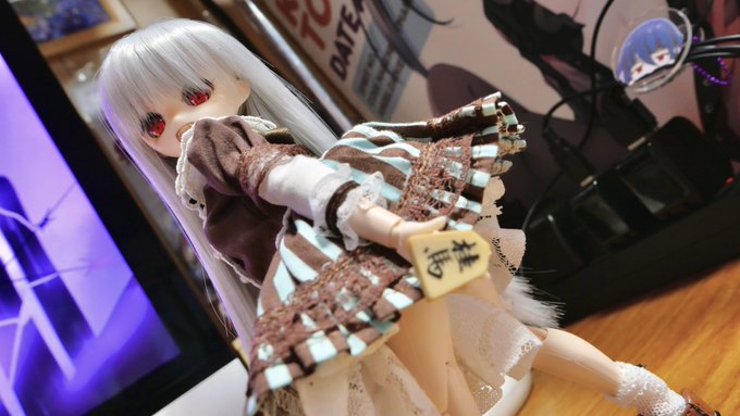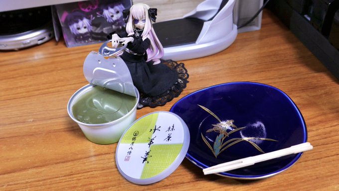 #夜のフィギュア撮影会 1/12 お題 『水』 ドローテアさん、食後のデザートに水羊羹をいただきましょうか(*´꒳`*) ξ(`回д・)ξ <抹茶味の水羊羹ですの!すぐにご用意いたしますわ〜!! #武装神姫