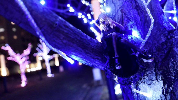 #夜のフィギュア撮影会 1/6 お題 『色』 ドローテアさん、冬の夜には寒色系のイルミネーションが似合うと思いませんか(*´꒳`*) ξ(`回д・)ξ <クールな雰囲気が素敵ですの!青色LEDの発明にマジ感謝ですわ〜!! #武装神姫