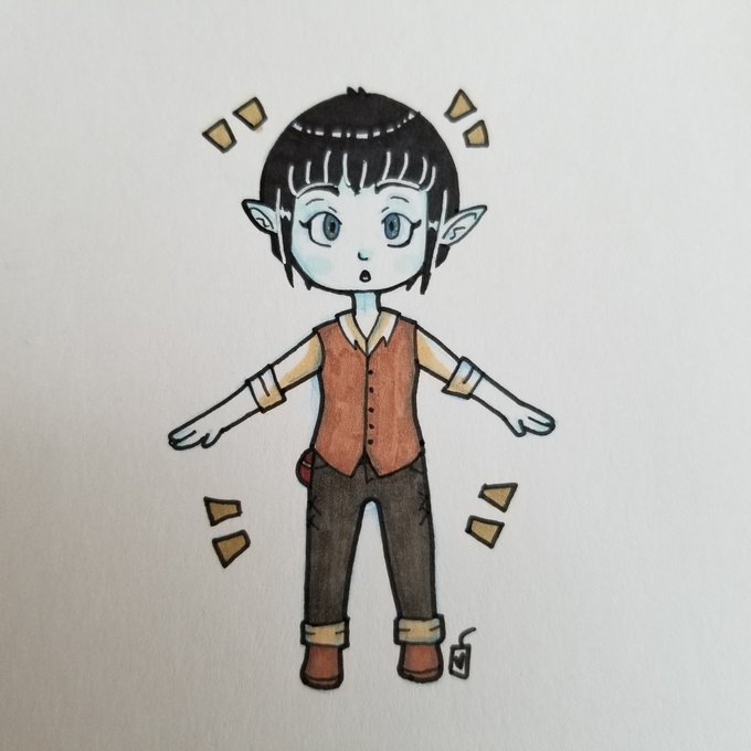 Inktober 2019, day 5. Caelynn likes to keep a journal during her travels, taking notes and making observations. #Inktober2019 #inktober #dnd #dnd5e #dungeonsanddragons #traditional #flumph #monster #pen #copicmarkers