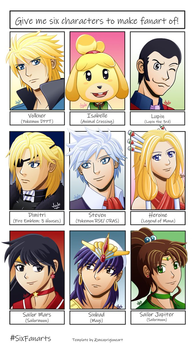 Another meme down @7@ DA version: fav.me/de4lybz #sixfanarts #artmeme #fireemblem #pokemon #sailormoon #animalcrossing #legendofmana #lupidthe3rd #magi