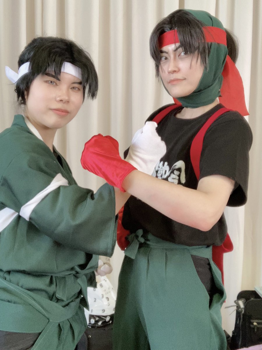【⚠️cosplay コスプレ】 参加者にオリジナルTシャツ配布で真っ先にこの格好をしようと浮かんだ、秋の大運動会風。頭巾付きなのは激しい動きでのウィッグ落下防止ですw ツッキーさんが白組側で合わせてくれて感動😭🙏✨愛してます❤️ 潮江白組応援団長:@yamitsuki0976 さん #忍び尼崎運動会2023