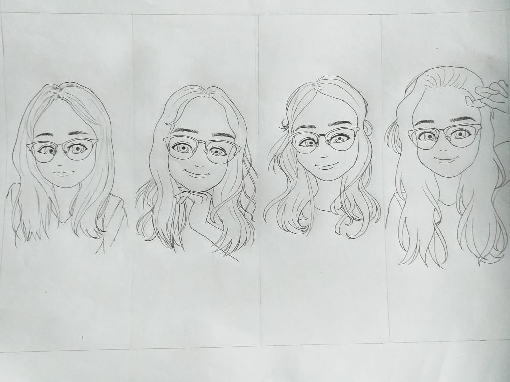 今回は似顔絵を描いてみようと思って、一番描きやすいと思う「自分」にしました。1枚目は下書き、2枚目は線画終わった後です。(ちなみに、全員「自分」です😊) 後々これで何かしたいと思うので、お楽しみに!です。😊🙏🏻 #似顔絵チャレンジ #お絵描き好きと繋がりたい #漫画よりの似顔絵