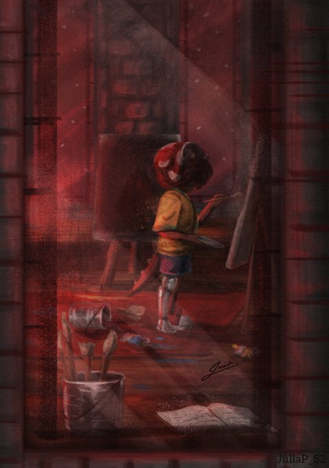 Tô achando muito engraçado e fofo que os ovos estão todos juntos com o BBH e o Richas tá toda hora no cantinho pintando Se eles mudam de lugar ele pega o cavalete e corre pra colocar perto deles de novi e continuar pintando imagino ele assim #qsmp #qsmpfanart