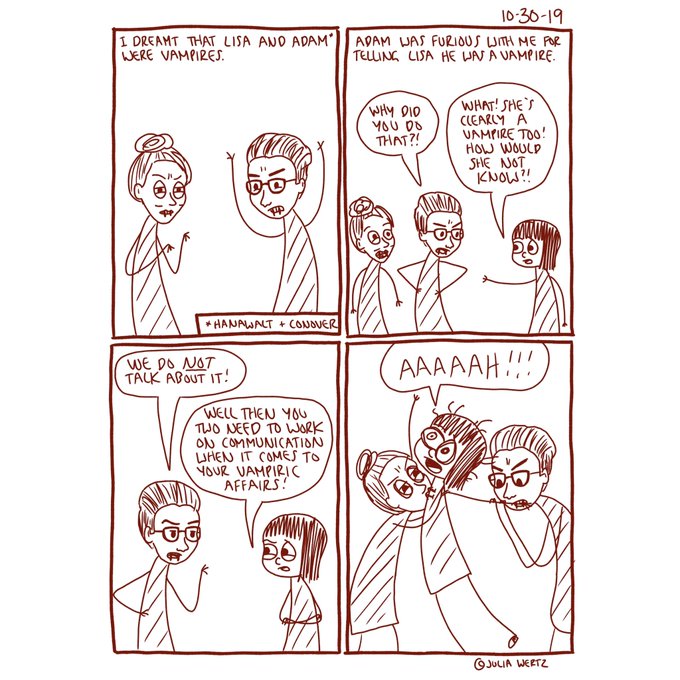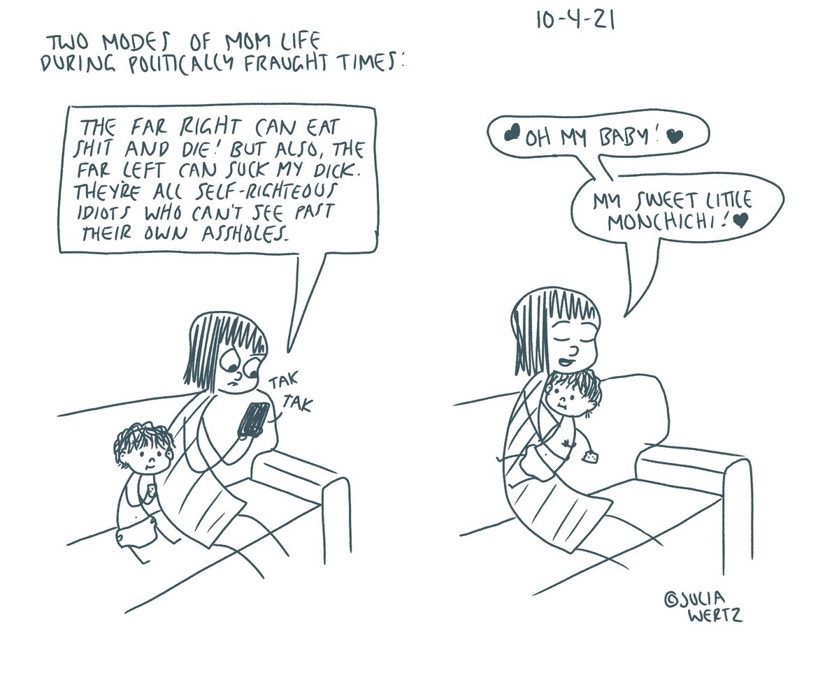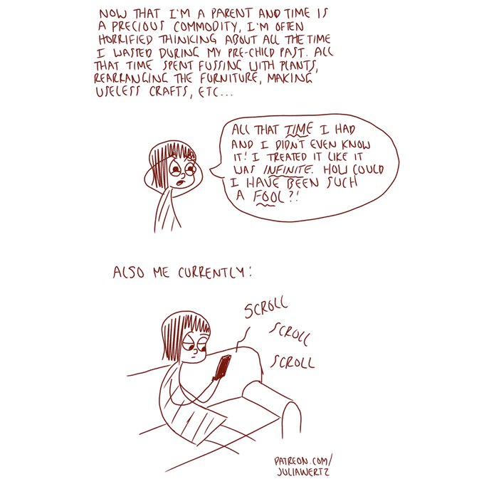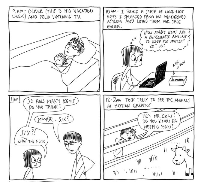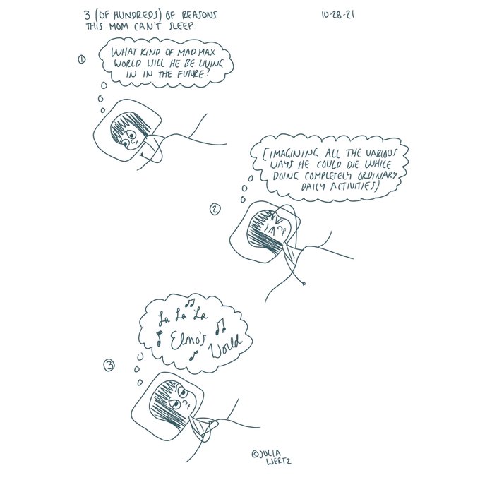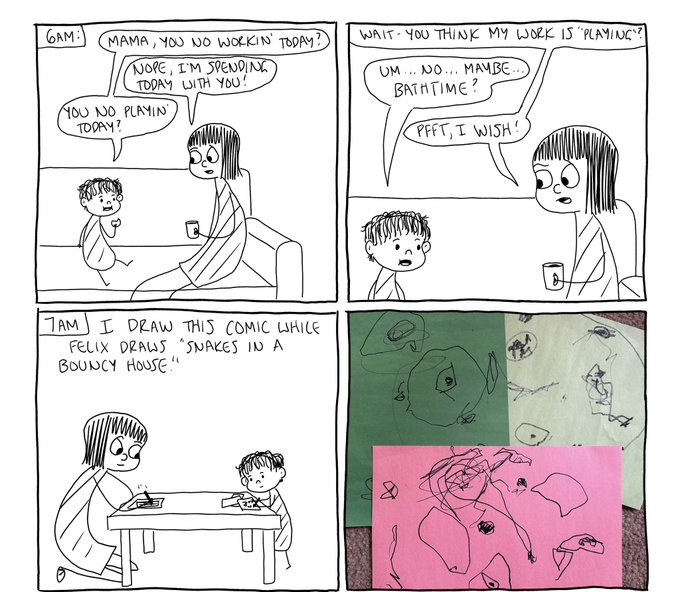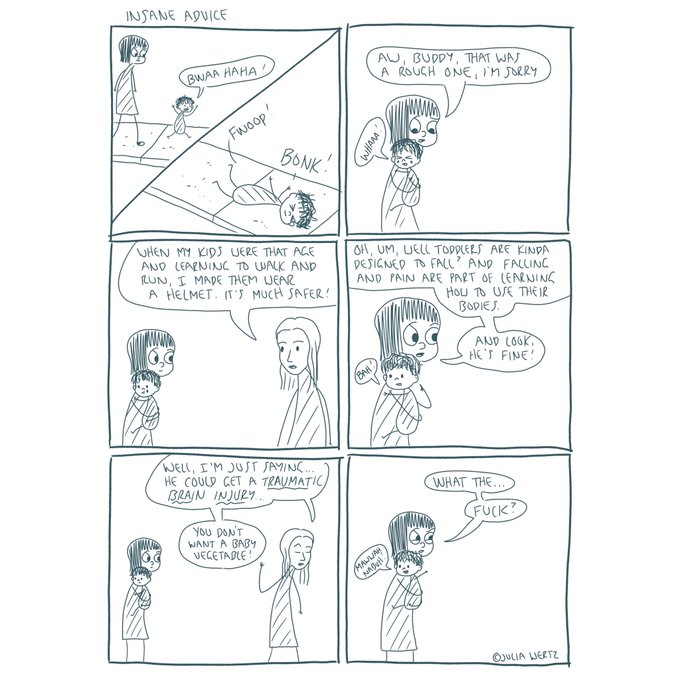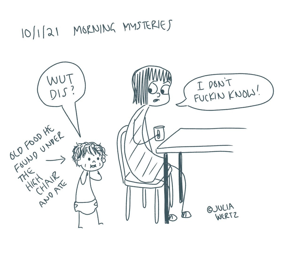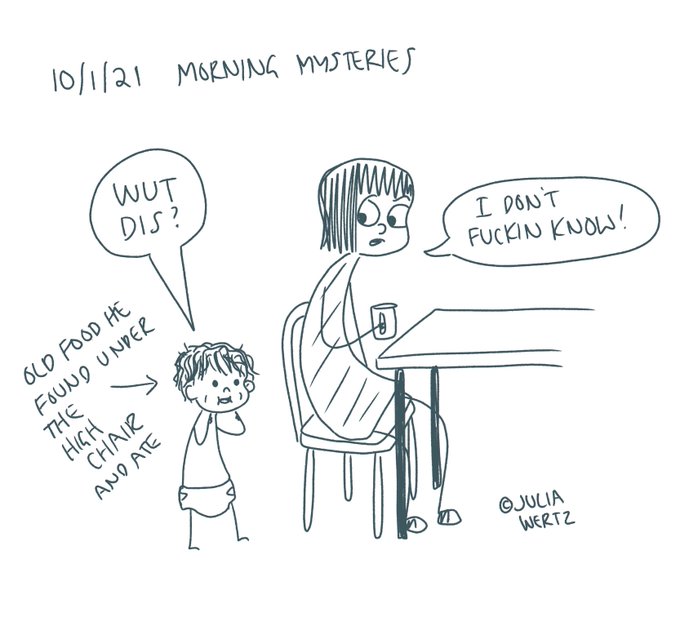 It bears noting that right after she said this, one of her kids, now older, almost hit Felix with his bike so that whole family can eat it #parenting #inktober