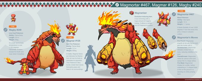 Another older Pokemon X Monster Hunter piece, featuring Magmortar. I remember no one asked for this, because Magmar and its evolution is fucking weird. More current work at: bit.ly/2Yc7fgp