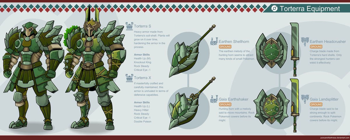 It's only half Monster Hunter but my personal project is turning Pokemon into MH versions of themselves plus armor that could be crafted from their materials twitter.com/SammyG_artz/st…