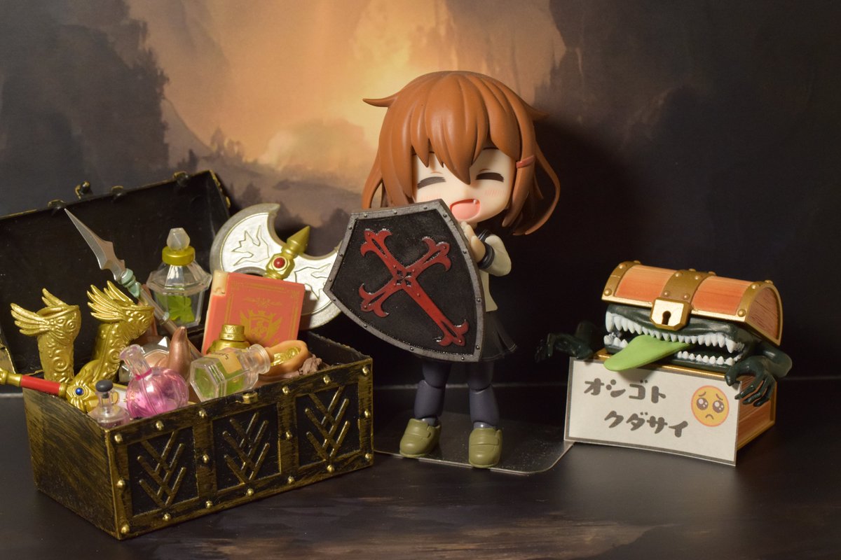 雷「新しい盾が出たわ。早速実戦投入しましょう」 宝箱からのアイテムを見定める雷ちゃん。しかしその背後で………(涙 #キューポッシュ