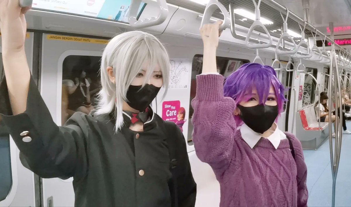 Fuchan and Ukiki on the MRT 😂 #fulgurovid #ukivioleta #cosplay #coser #cosplayer #noctyx #nijisanjiEN