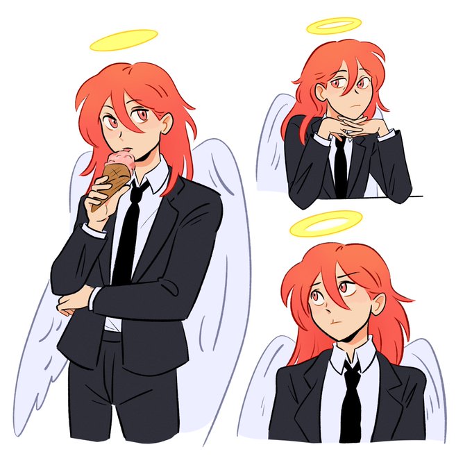 Angel with a somewhat shorter hairstyle, he is so fun to draw also repost cause the blue outline annoyed me ;w; - #chainsawman #angeldevil #csmプラス