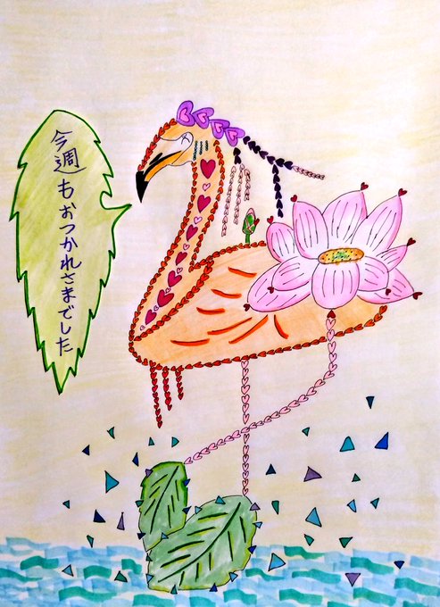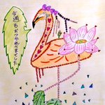 ハスの花を身に付けたフラミンゴから皆さんに伝えたいことがあるようです。 #イラスト好きさんと繋がりたい #絵描きさんと繋がりたい #アトリエの系譜 #絵柄が好みって人にフォローされたい #イラスト王国 #イラスト #みんなで楽しむTwitter展覧会