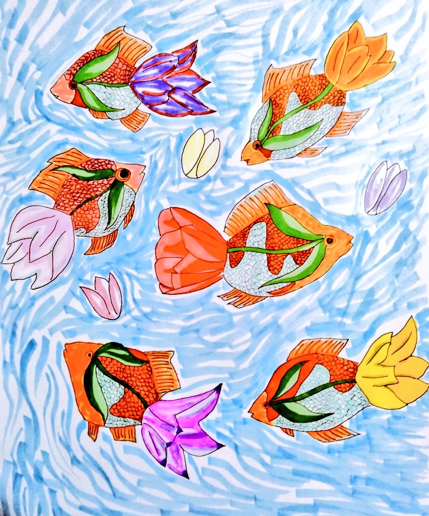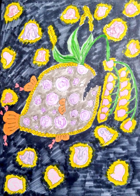 今日は私の誕生日😁 日頃の感謝を込めて喜びをトビウオとアキノキリンソウ(花)で表現してみました! いつも見て頂きありがとうございます! #誕生日 #イラスト好きさんと繋がりたい #絵描きさんと繋がりたい #フォロー歓迎 #アトリエの系譜 #みんなで楽しむTwitter展覧会
