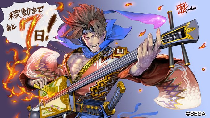 【英傑大戦 稼働カウントダウンリレーツイート】 #英傑大戦 稼働まであと7日! 高杉晋作の三味線が火を吹く!! 明日は、一徳先生です! 英傑大戦の情報はコチラ eiketsu-taisen.com @eiketsu_taisen