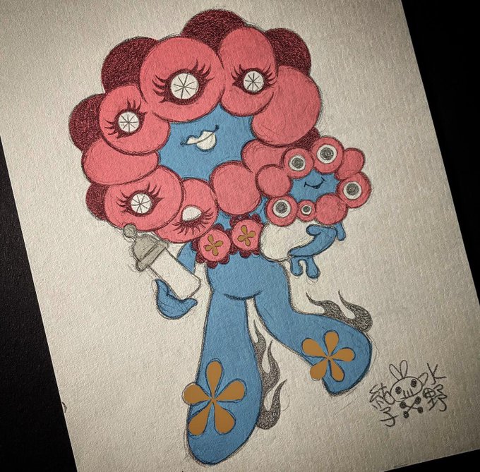 あれこれ悩んだ挙句、マザー&ベビー・ミャクミャク様を描いてみましたよ!🍼ミャクミャクきぐるみの写真を見ましたが、脚部分のたるみ具合がとても好みでした。☺️ Making fan art of 2025 Osaka Expo mascot is trending in Japan so I decided to join in!✨ #ミャクミャク colored in #adobefresco