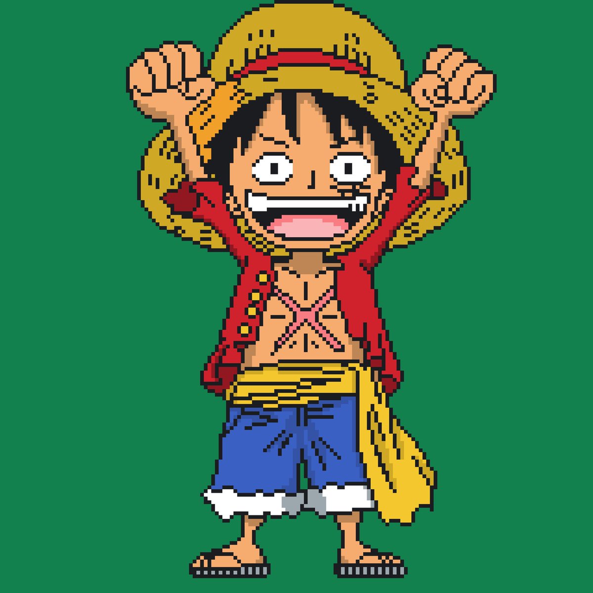 ルフィをドットで描きました。 #ワンピース #ルフィ #ドット絵