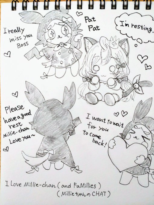 I miss you Petra-chan,we'll be waiting you〜。 A picture I painted while listening to Millie-chan's cute song(10min.)(Sorry for the messy handwriting, and I'm really sorry if the lyrics are wrong) #DrawMillie #PetraArt