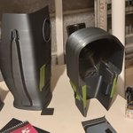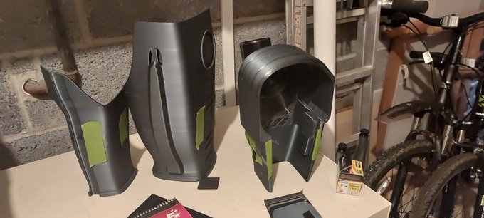 Busy today - needs to be with less the 6 wks to go! Glued thigh pieces together & bicep, managed to crack the bicep somehow but at least I was already gluing! Finished building the feet, sanded a forearm and its greebles and got them primed. #Cosplay#StarWars#DarkTrooper