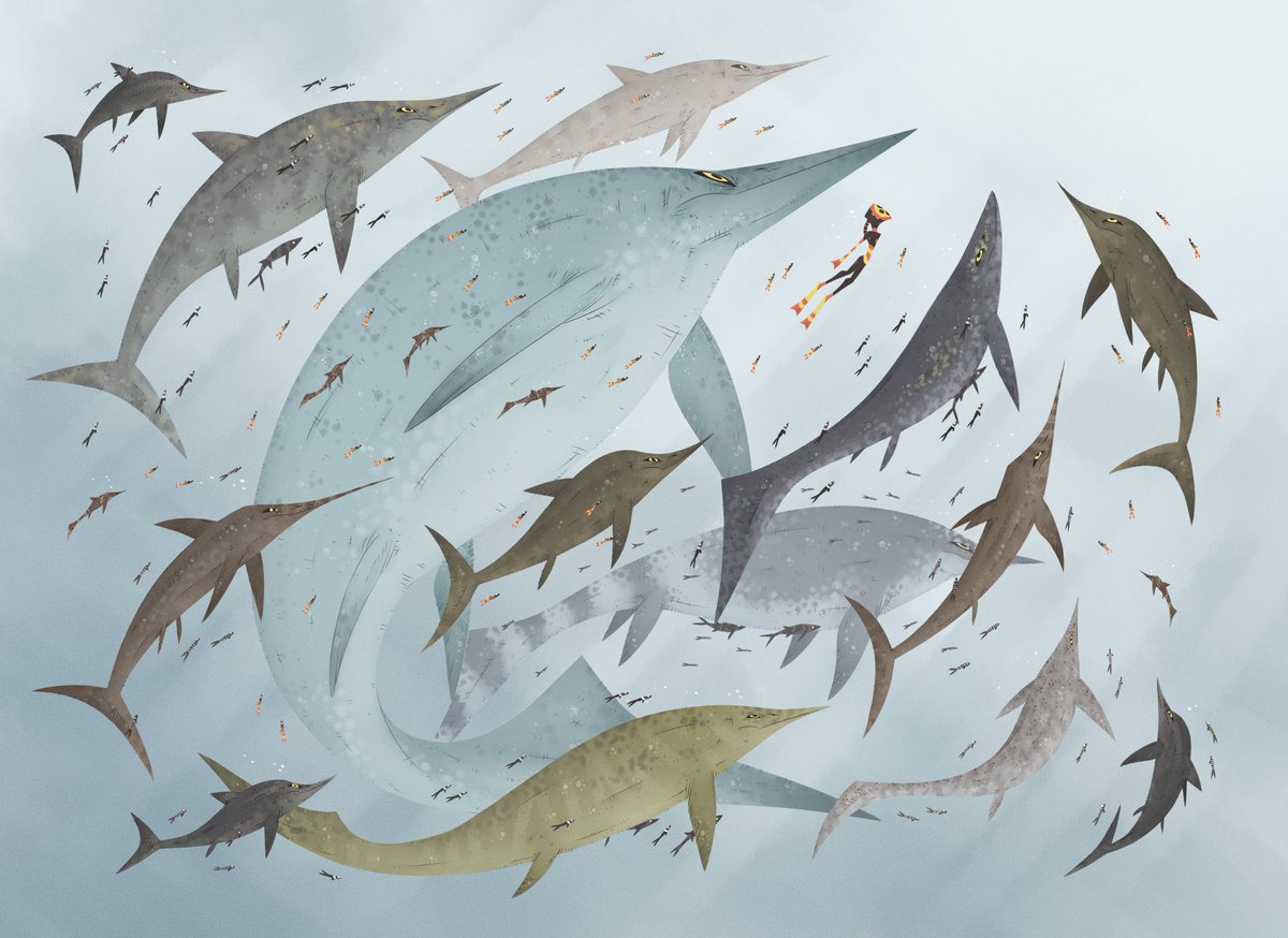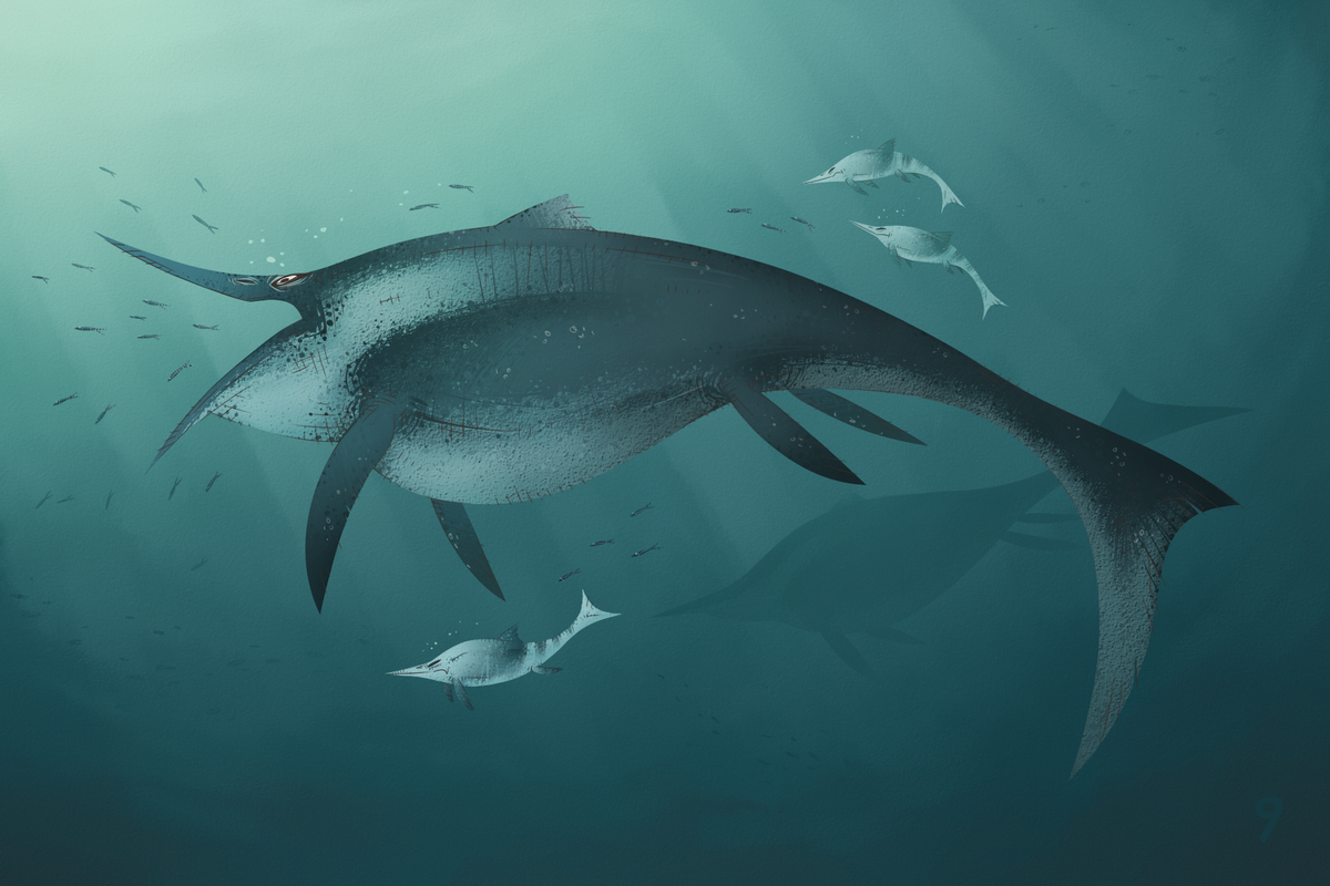 the triassic leviathan shonisaurus just something I felt inspired to work on in part due to the mixosaurus preserved with a dorsal fin #art #digitalart #paleoart #sciart #ichthyosaur