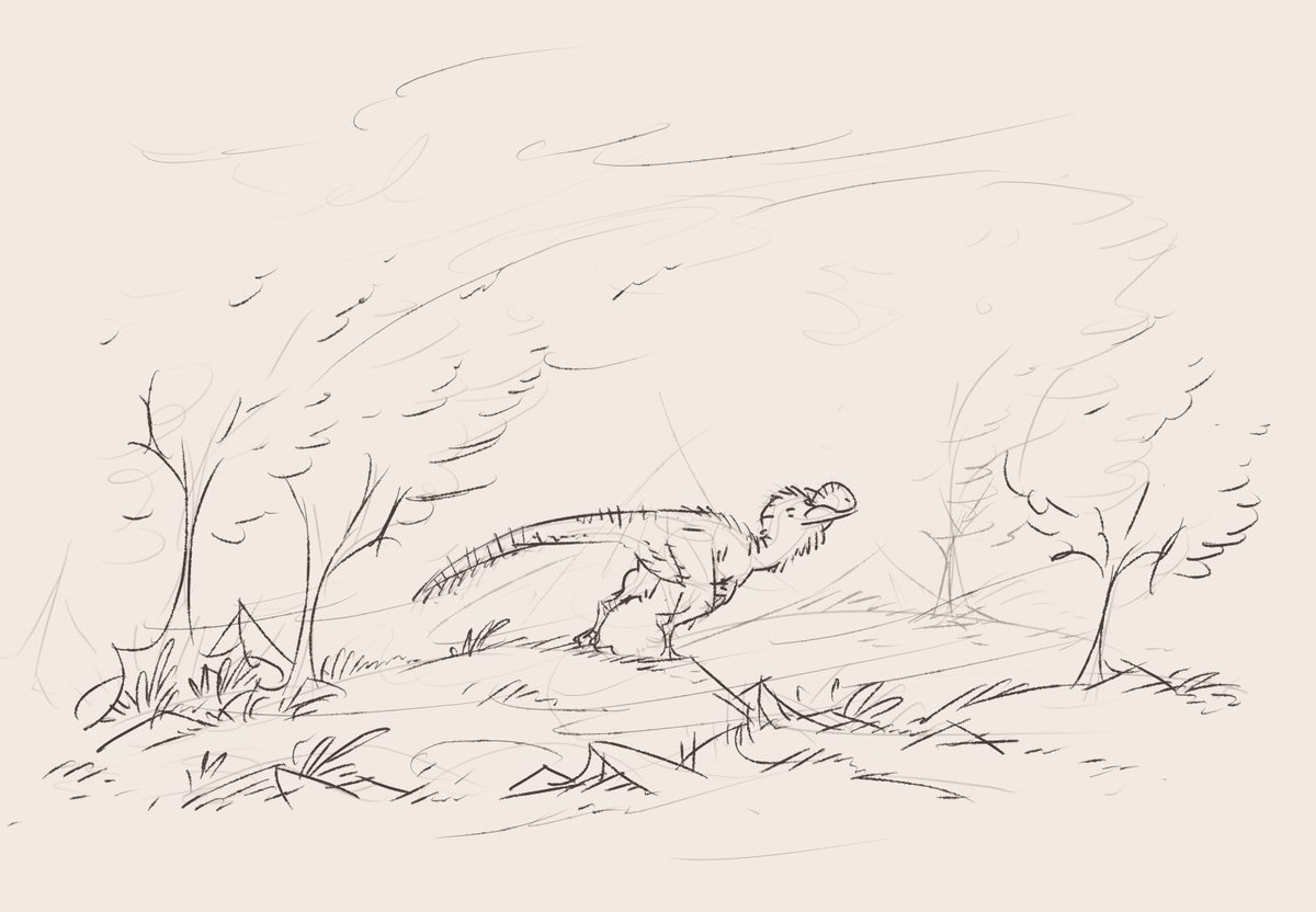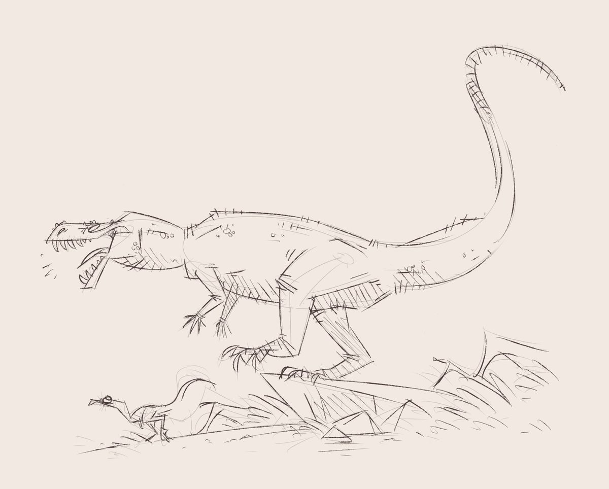 #paleostream 20 minute sketches time: Tanystropheus, Yutyrannus, Ogresuchus and Udanoceratops #art #digitalart #paleoart #sciart