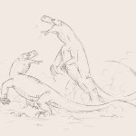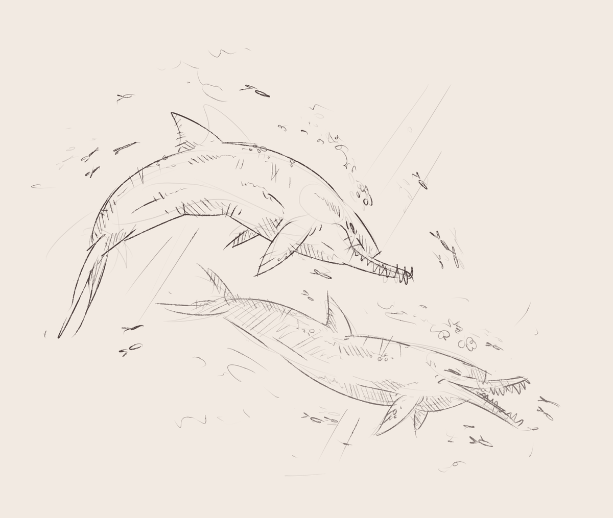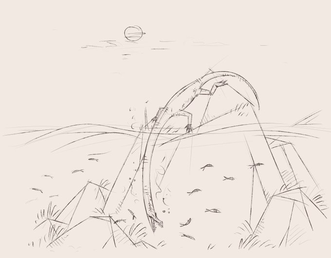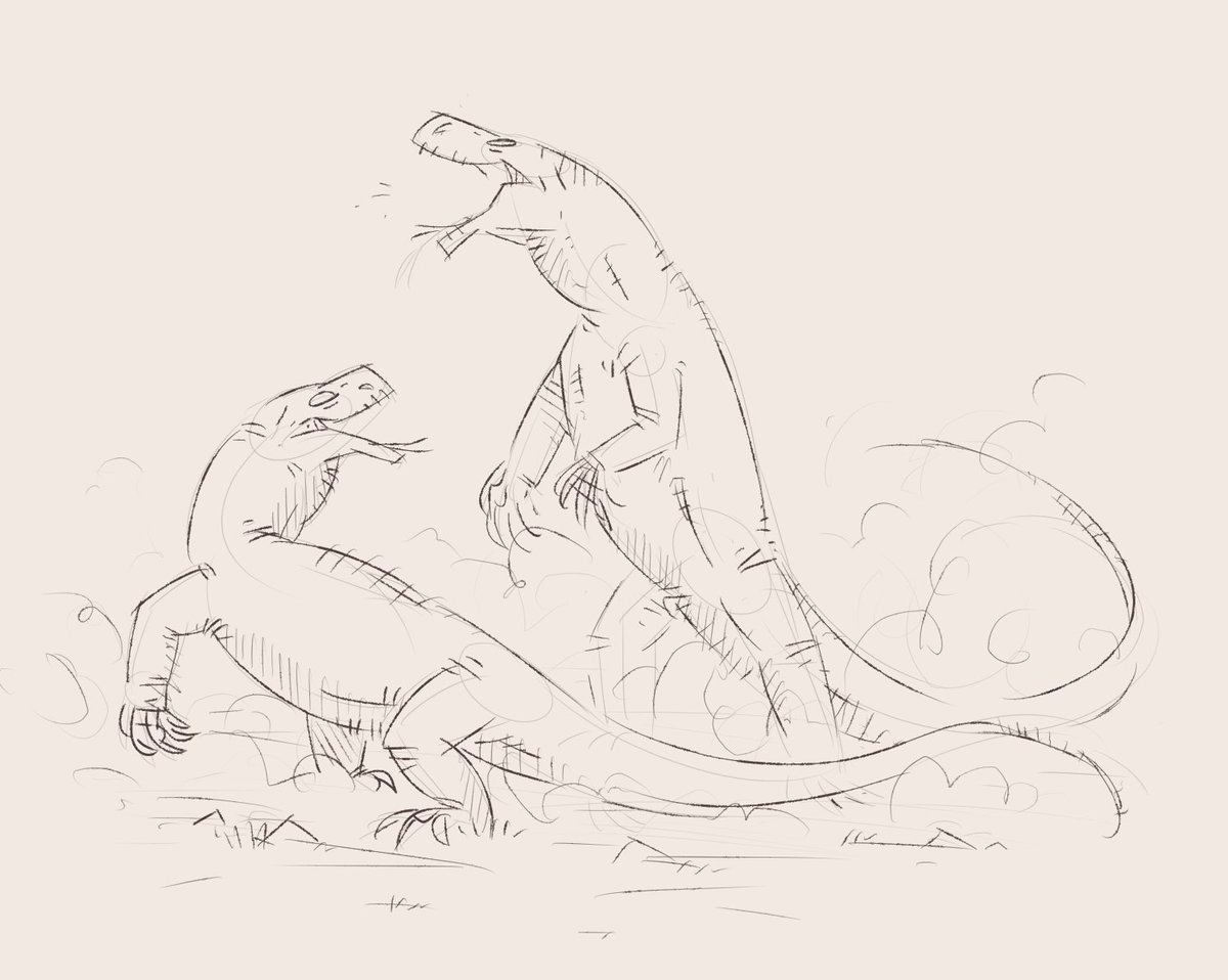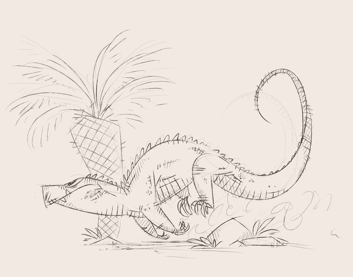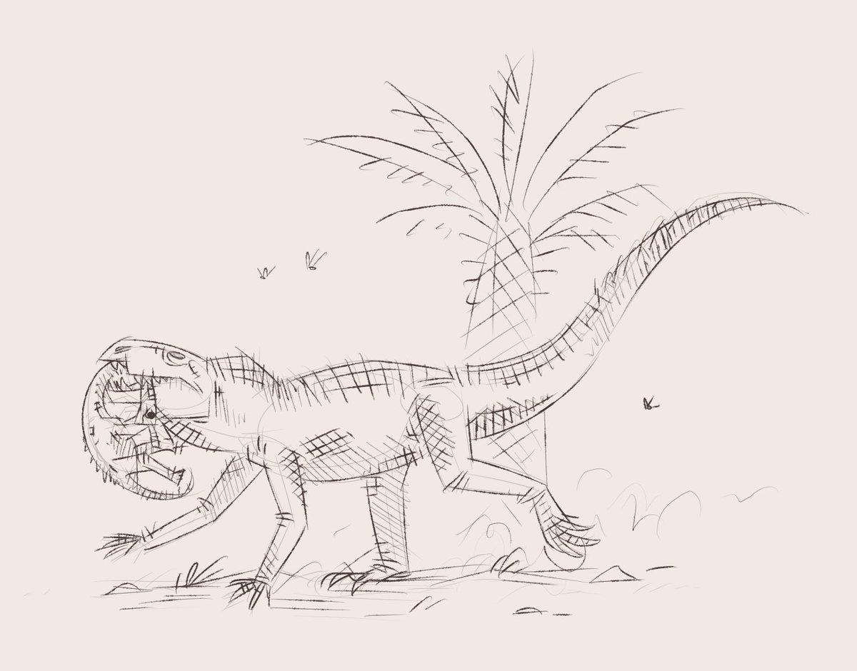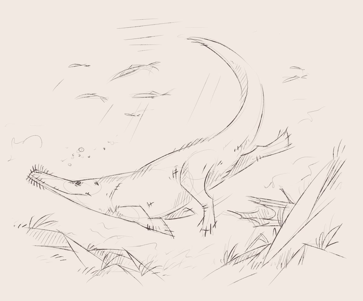 more 20 minute #paleostream sketches, poposaurus, crassigyrinus, saurosuchus and megalania #paleoart #sciart #digitalart